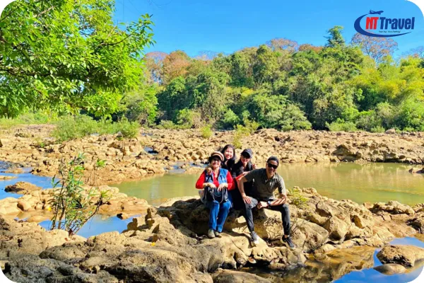 - Mùa khô (Tháng 12 – Tháng 5): Đây là thời điểm lý tưởng nhất để tham quan thác Trời Nam Cát Tiên. Mùa khô, dòng nước thác giảm dần, để lộ ra những bãi đá lổm chổm khắp một vùng rộng lớn. Thác trông như những ngọn suối nhỏ chảy róc rách qua từng ghềnh đá, tạo nên âm thanh du dương giữa rừng sâu.