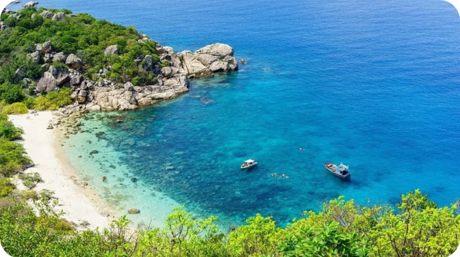 - Đi thuyền: Để khám phá các bãi biển như Bãi Cây Me, Bãi Nước Ngọt hay tham quan nhà bè nuôi tôm hùm, bạn cần di chuyển bằng thuyền. Bạn có thể liên hệ với chủ bè hoặc các dịch vụ du lịch trên đảo để thuê thuyền với giá hợp lý. Thuyền đáy kính là lựa chọn tuyệt vời để ngắm san hô mà không cần lặn xuống nước.