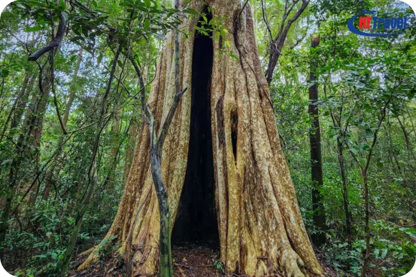 Điều kỳ diệu hơn nữa là dù thân cây rỗng ruột nhưng cây vẫn vươn cao với những cành lá xanh mướt, minh chứng cho sức sống mãnh liệt của thiên nhiên. Đây là địa điểm check-in không thể bỏ qua khi du lịch Nam Cát Tiên.