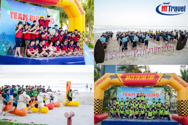 Chương trình team building sôi động trên bãi biển riêng của resort do đội ngũ chuyên nghiệp Nam Thiên Travel tổ chức:
