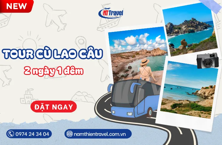 07h30: Di chuyển bằng cano cao tốc ra đảo Cù Lao Câu – hòn đảo được ví như “viên ngọc xanh giữa biển”, nổi tiếng với làn nước trong vắt và bờ cát trắng mịn. Trên hành trình, hướng dẫn viên Nam Thiên Travel chia sẻ về văn hóa biển và các câu chuyện thú vị quanh vùng đất này.