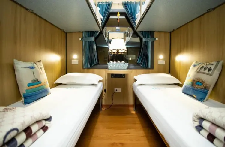 19h30: Tàu lửa 5 sao khởi hành đi Ga Quảng Ngãi bắt đầu hành trình tour đảo Lý Sơn Măng Đen 4 ngày 5 đêm đầy mới lạ. Quý khách nghỉ ngơi trong khoang giường nằm mềm có máy lạnh, riêng tư và thoải mái, tận hưởng hành trình đêm yên bình trên chuyến tàu cao cấp. Tiếng bánh xe lăn đều trên đường ray, khung cảnh phố thị dần lùi xa nhường chỗ cho ruộng đồng và núi non miền Trung – tất cả tạo nên một đêm đầu tiên lãng mạn và khác biệt.